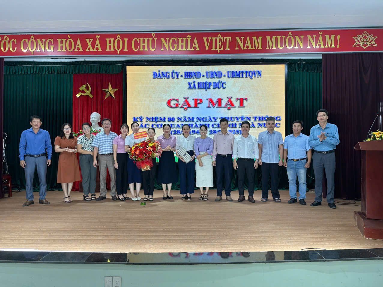 Đến dự buổi gặp mặt có đồng chí Lê Quang Quỳnh, Bí thư Đảng ủy, Chủ tịch HĐND xã; đồng chí Trần Thị Thu Huyền, Phó Bí thư thường trực Đảng ủy; đồng chí Lưu Hoàng Ân- Phó Bí thư, Chủ tịch UBND xã; đồng chí Nguyễn Thị Kim Loan, UVBTV-Chủ tịch Ủy ban MTTQ Việt Nam xã cùng các đồng chí trong Ban Thường vụ Đảng ủy, HĐND, UBND xã và toàn thể cán bộ, công chức, viên chức, người hoạt động không chuyên trách trong các cơ quan Văn phòng HĐND&UBND, Phòng Kinh tế và Phòng Văn hóa-Xã hội xã Hiệp Đức.