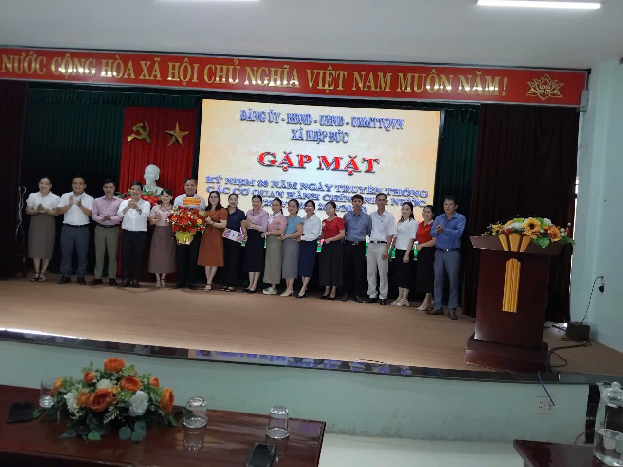 Nhân dịp này, lãnh đạo Đảng ủy-HĐND-UBND-UBMTTQ Việt Nam xã đã tặng hoa và quà chúc mừng cán bộ, công chức, viên chức, NHĐKCT của các cơ quan Văn phòng HĐND&UBND, Phòng Kinh tế và Phòng VH-XH xã Hiệp Đức.
