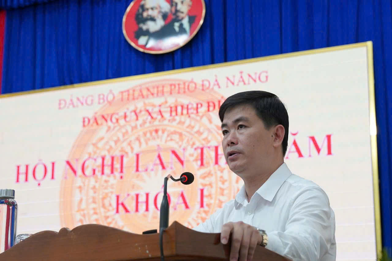 Đồng chí Lê Quang Quỳnh – Bí thư Đảng ủy, Chủ tịch HĐND xã phát biểu
