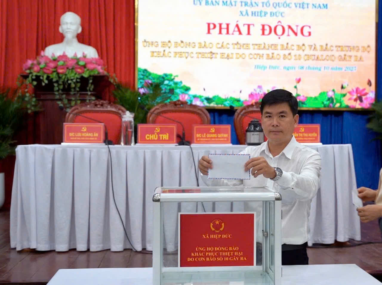 Đồng chí Lê Quang Quỳnh – Bí thư Đảng ủy, Chủ tịch HĐND xã ủng hộ đồng bào các tỉnh phía bắc khắc phục thiên tai do cơn bão số 10 gây ra
