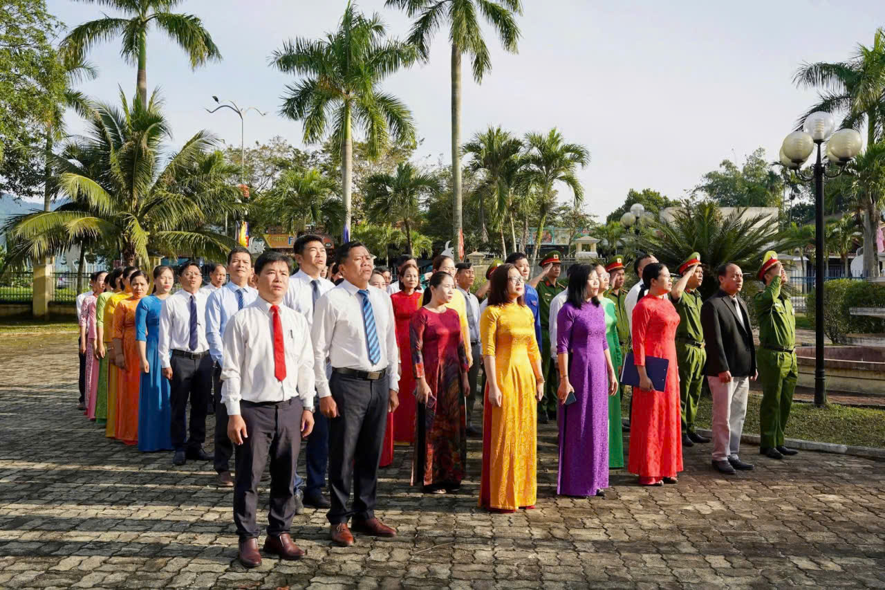 Các đồng chí Thường trực Đảng ủy dự Lễ chào cờ đầu tháng 10/2025