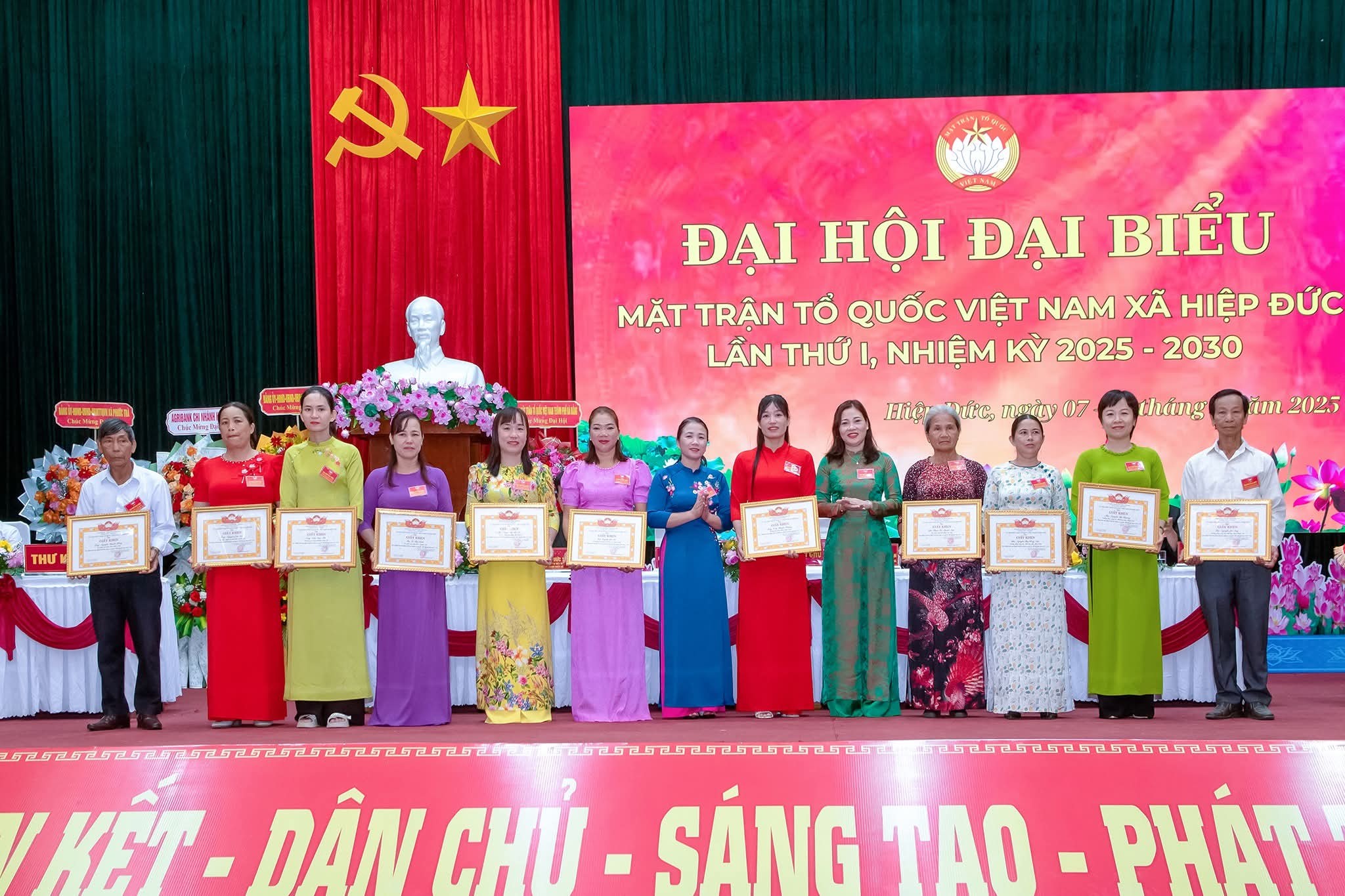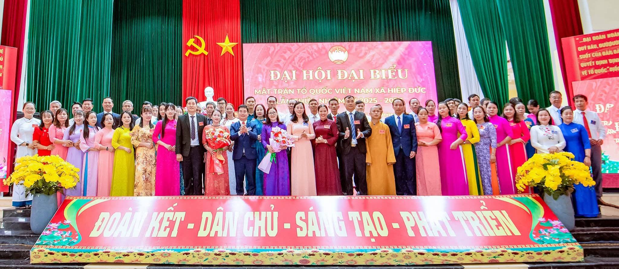 Với tinh thần tích cực, khẩn trương, nghiêm túc, dân chủ và đầy trách nhiệm, Đại hội đại biểu MTTQ Việt Nam xã Hiệp Đức lần thứ I, nhiệm kỳ 2025-2030 đã thành công tốt đẹp, hoàn thành toàn bộ nội dung chương trình Đại hội đề ra. Tại Đại hội, các đại biểu đã hiệp thương cử ra Ủy ban MTTQ Việt Nam xã khóa I, nhiệm kỳ 2025-2030 gồm 55 vị; Trong hội nghị lần thứ nhất Ủy ban MTTQ Việt Nam xã đã hiệp thương cử Ban Thường trực Ủy ban MTTQ Việt Nam xã gồm 05 vị; cử bà Nguyễn Thị Kim Loan- Ủy viên Ban Thường vụ Đảng ủy xã giữ chức danh Chủ tịch Ủy ban MTTQ Việt Nam xã, 04 Phó Chủ tịch Ủy ban MTTQ Việt Nam xã, đồng thời là trưởng các Tổ chức chính trị - xã hội xã.