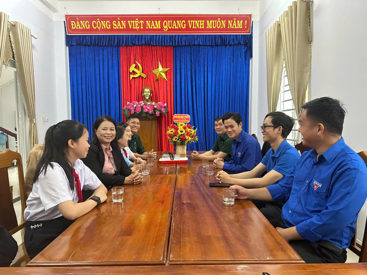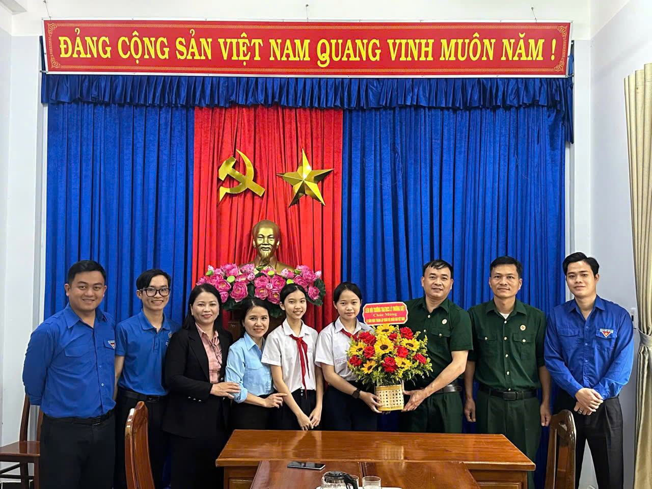 Thay mặt tập thể cán bộ, giáo viên, nhân viên và học sinh toàn trường, đoàn đã gửi tới các bác, các chú Cựu chiến binh những lời chúc mừng trân trọng, lời thăm hỏi ân cần và lòng biết ơn sâu sắc đối với những đóng góp to lớn của các thế hệ cha anh trong sự nghiệp đấu tranh giải phóng dân tộc, bảo vệ Tổ quốc và xây dựng quê hương hôm nay.