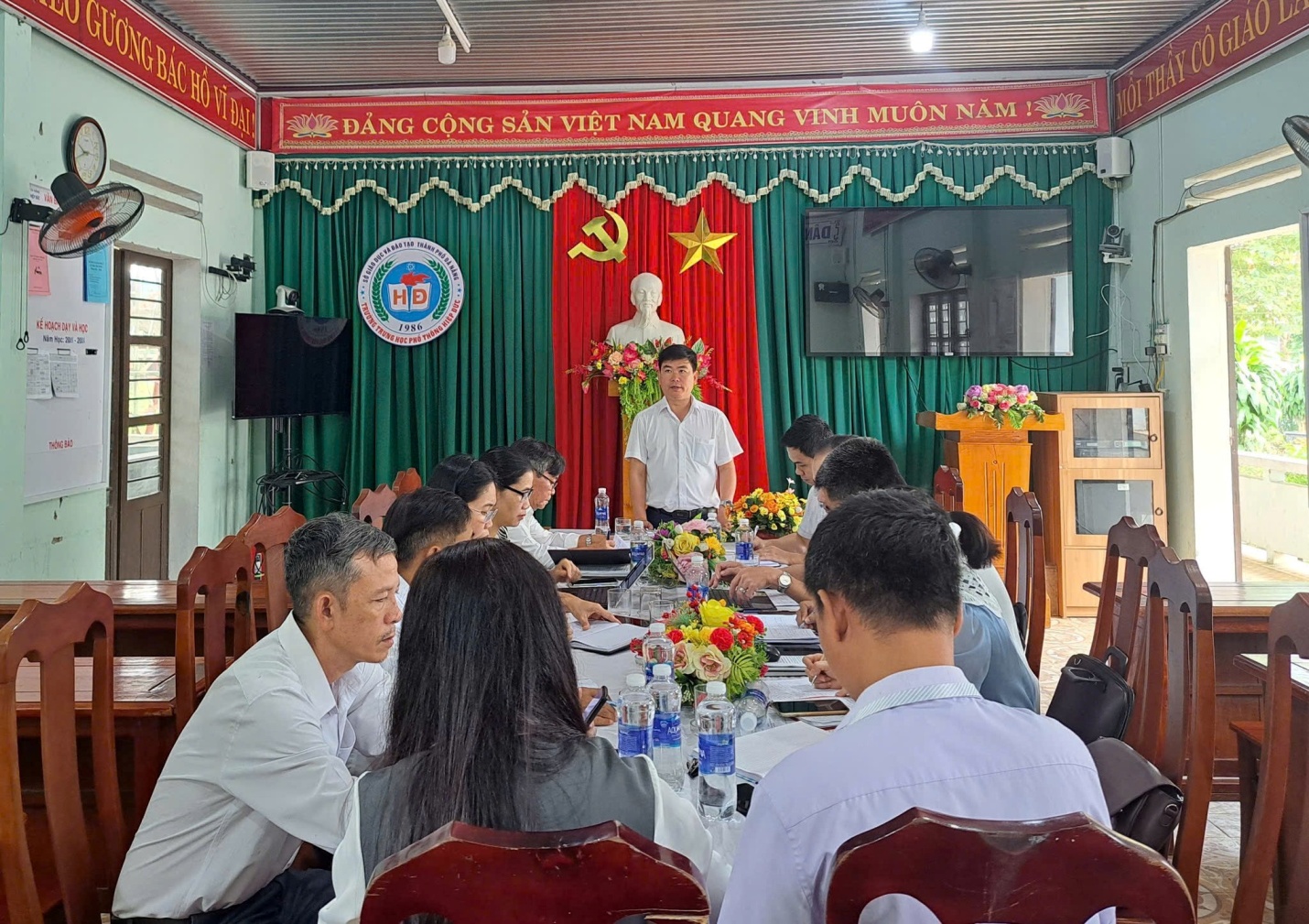 Đồng chí Lê Quang Quỳnh – Bí thư Đảng ủy, Chủ tịch HĐND xã làm việc với Chi ủy chi bộ, Bí thư Đoàn trường THPT Hiệp Đức