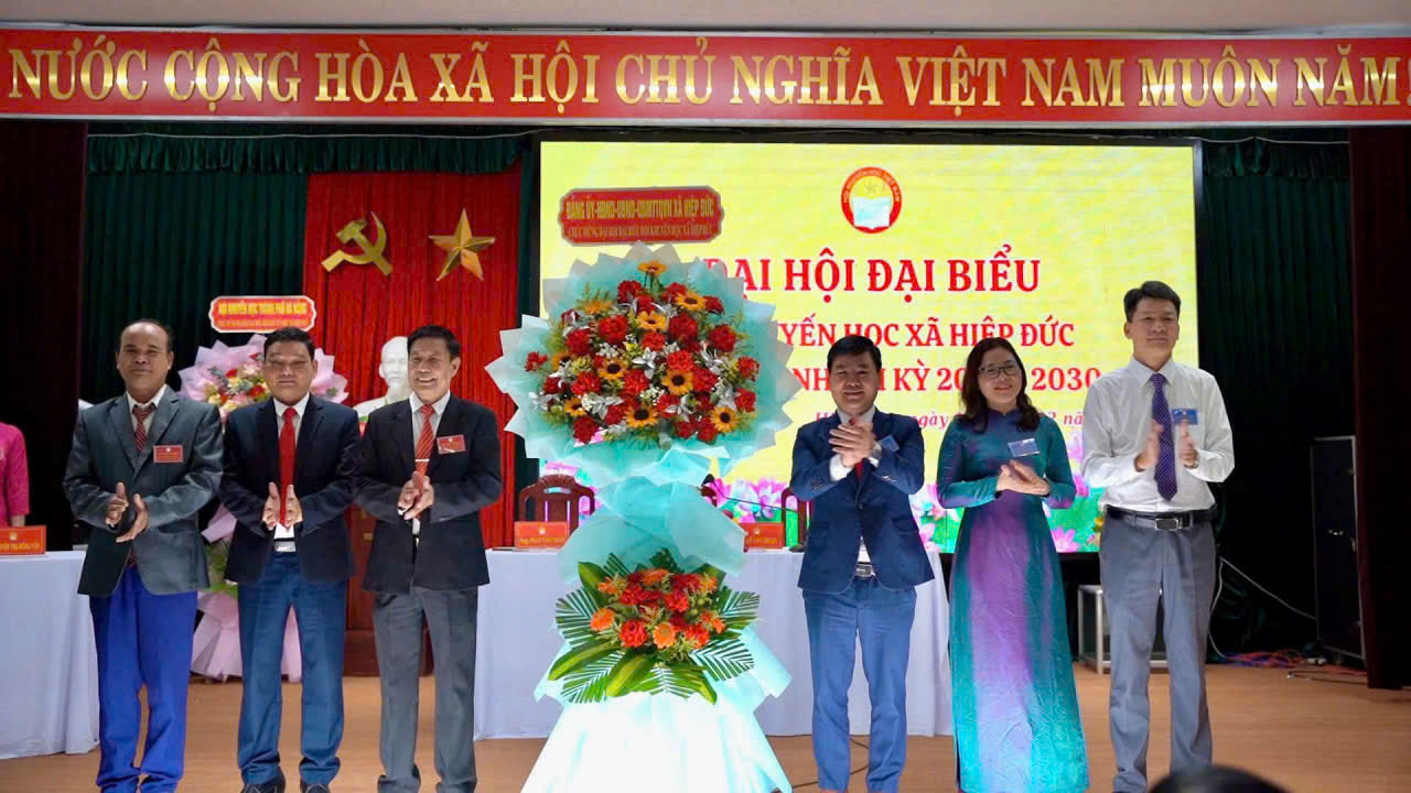 tặng hoa chúc mừng Đại hội đại biểu Hội Khuyến học xã Hiệp Đức lần thứ I, nhiệm kỳ 2025-2030