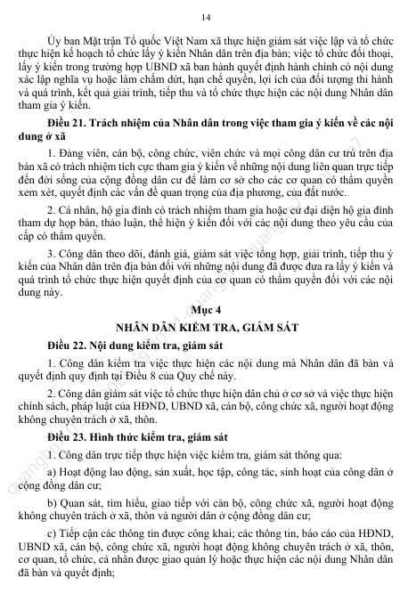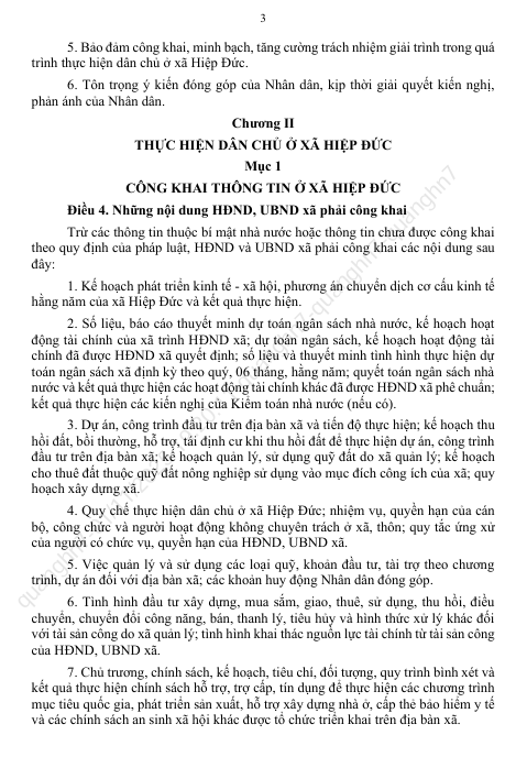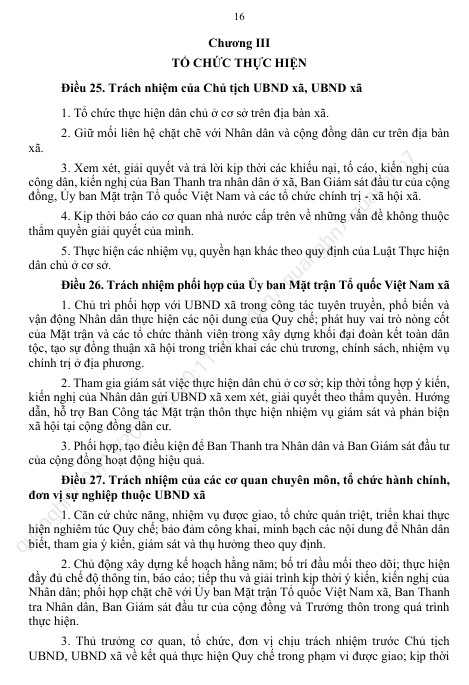 Mục đích chính của việc ban hành quy chế thực hiện dân chủ cơ sở là để bảo đảm quyền làm chủ của nhân dân, xây dựng cơ sở pháp lý và cơ chế để nhân dân thực hiện quyền làm chủ theo Hiến pháp, đồng thời tạo môi trường công khai, minh bạch, góp phần xây dựng chính quyền vững mạnh. Quy chế này cũng nhằm phát huy vai trò giám sát, phản biện của người dân, nâng cao trách nhiệm của cán bộ, công chức và ngăn chặn các hành vi tiêu cực.