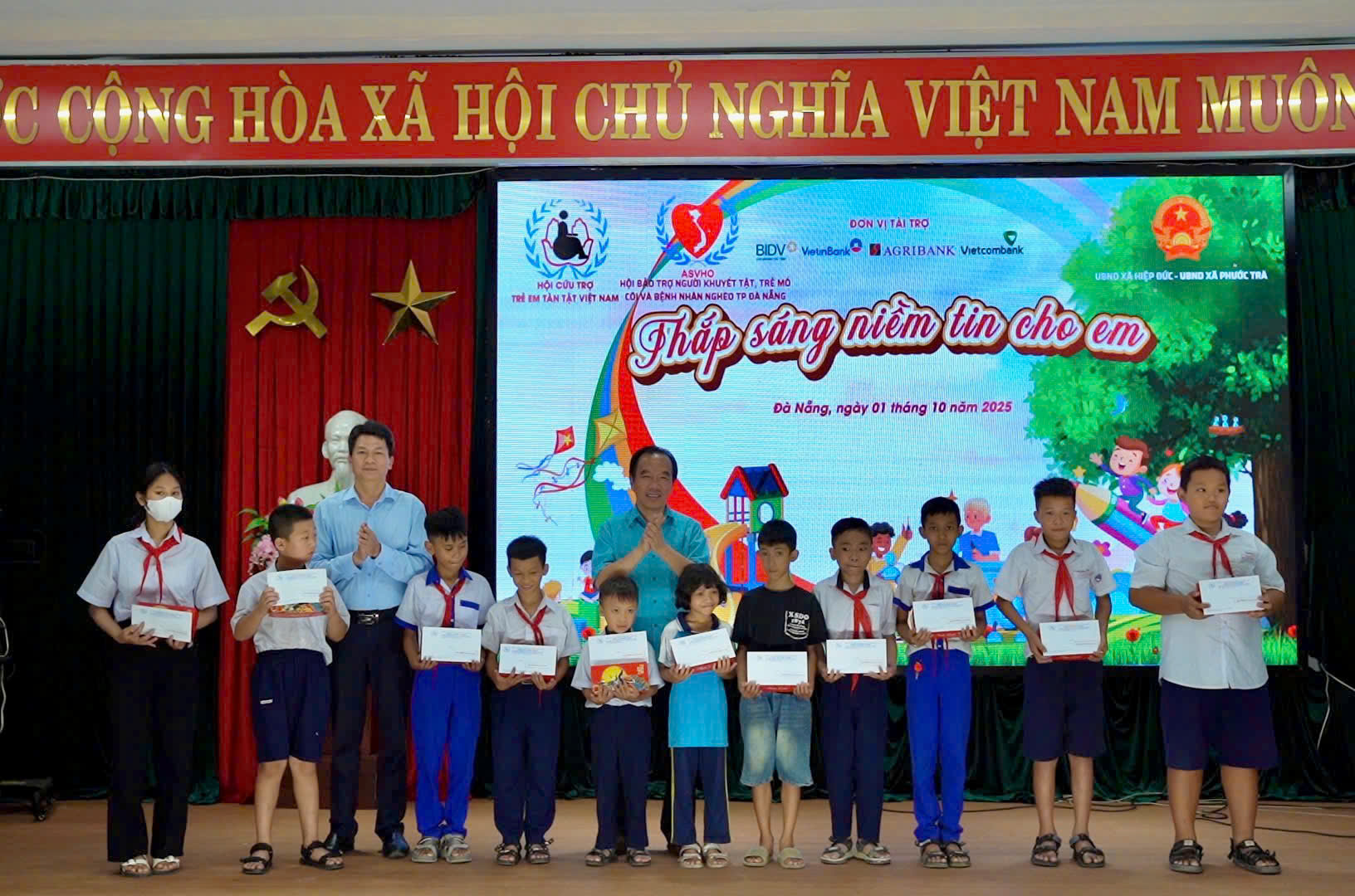 Đại diện lãnh đạo 2 xã Hiệp Đức và Phước Trà, đồng chí Nguyễn Phước Niên – Phó Chủ tịch UBND xã Hiệp Đức gửi lời cảm ơn sâu sắc đến Hội Cứu trợ trẻ em tàn tật Việt Nam, Hội Bảo trợ thành phố Đà Nẵng cùng các đơn vị đồng hành, đồng thời mong muốn trong thời gian tới sẽ tiếp tục có nhiều hoạt động thiết thực, nhân văn hơn nữa để hỗ trợ trẻ em có hoàn cảnh khó khăn trên địa bàn.
