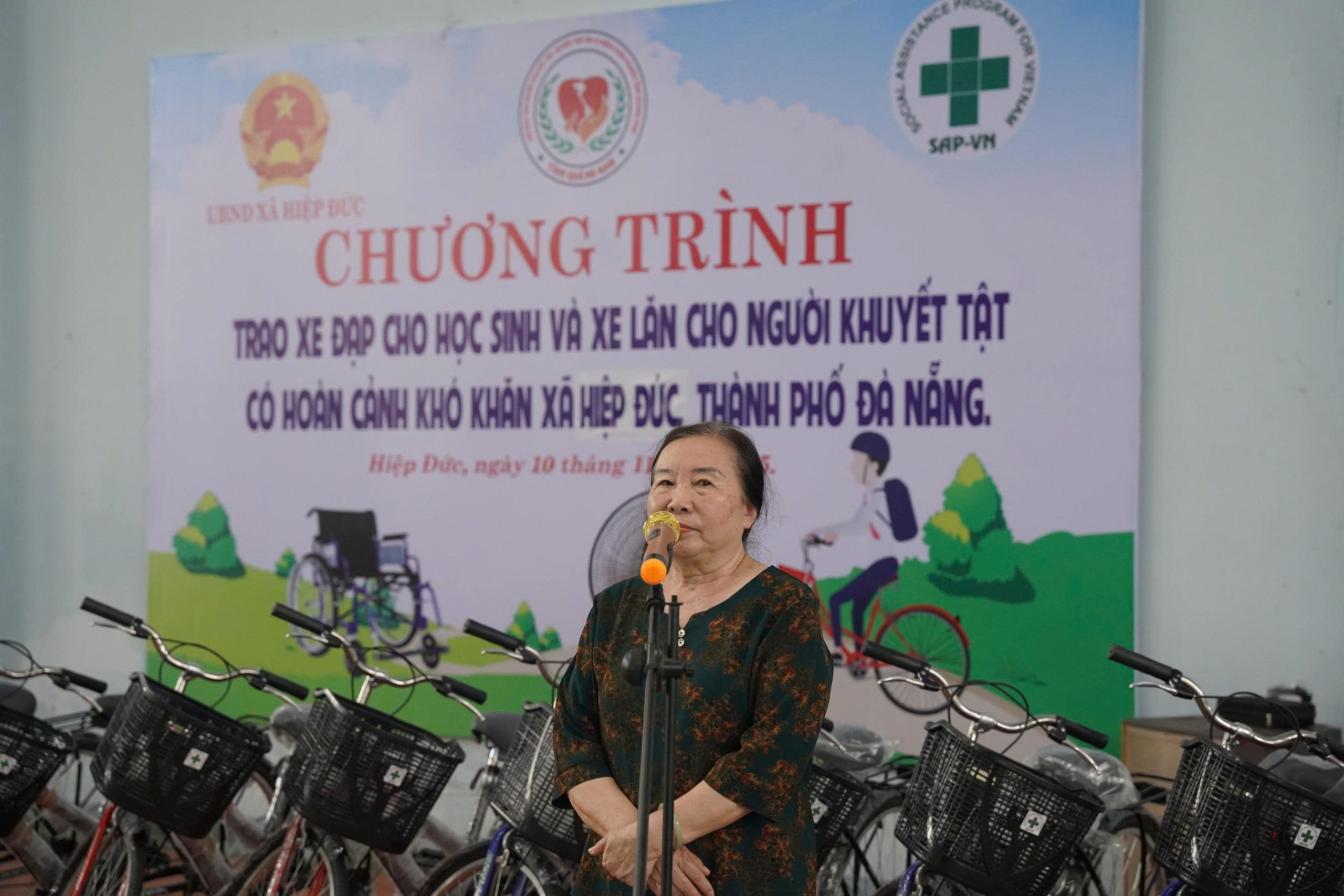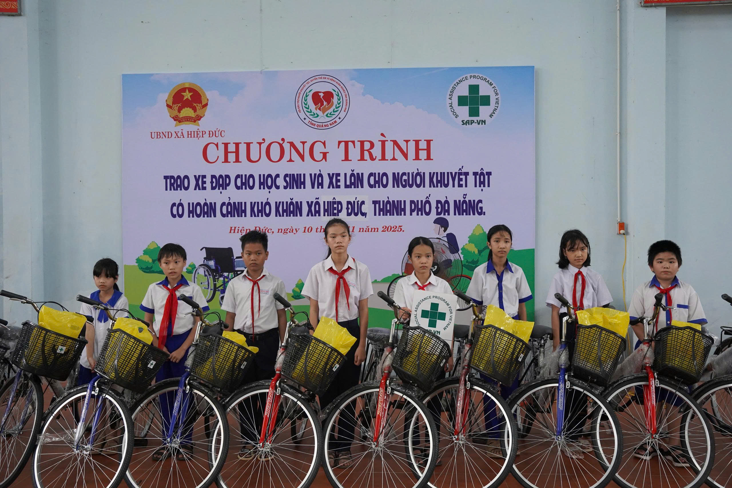 Được biết, trong đợt trao tặng này, Hội Bảo trợ người khuyết tật, Quyền trẻ em và bệnh nhân nghèo tỉnh Quảng Nam (cũ) phối hợp với Hội SAP-VN đã trao tổng cộng 100 chiếc xe đạp và 101 chiếc xe lăn cho người dân có hoàn cảnh khó khăn tại 5 xã trên địa bàn tỉnh, trong đó có xã Hiệp Đức, góp phần lan tỏa tinh thần nhân ái, sẻ chia trong cộng đồng.