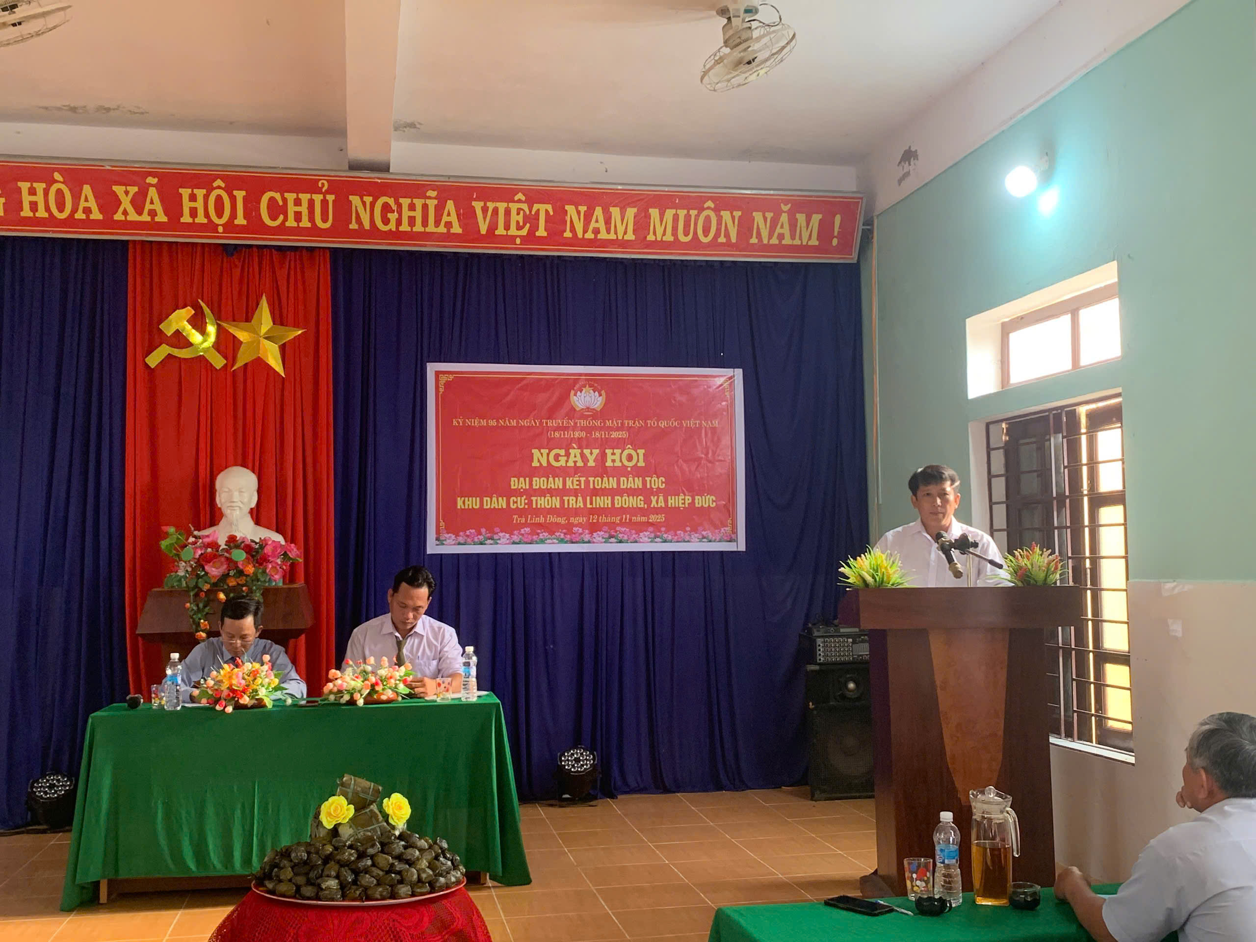 Phát biểu tại ngày hội, đồng chí Lưu Hoàng Ân – Chủ tịch UBND xã Hiệp Đức ghi nhận và biểu dương tinh thần đoàn kết, sự nỗ lực của nhân dân khu dân cư Trà Linh Đông trong thực hiện các phong trào thi đua yêu nước. Đồng chí mong muốn Ban công tác Mặt trận thôn và bà con Nhân dân tiếp tục phát huy tinh thần tương thân, tương ái, xây dựng khu dân cư ngày càng phát triển, đời sống nhân dân ngày càng nâng cao.